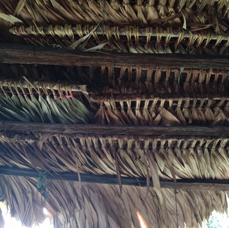 The BriBri homestead, toasting cacao (very hot on the fingers!), grinding the beans on the metate, resident turkeys, beautiful woven leaf roofing and a hand carved gourd close-up.